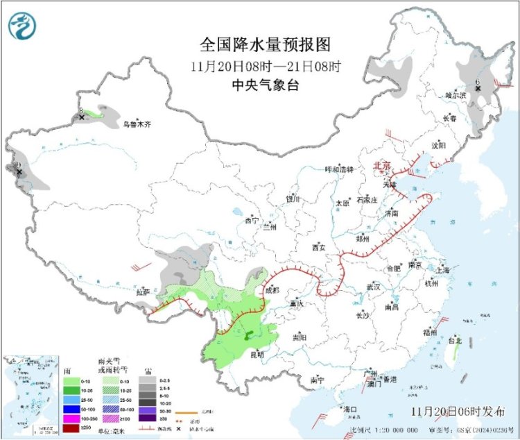 昨日,我国没有明显降水出现,寒潮影响过后大部地区气温有所回升。预计今明两天,全国大部地区仍会维持降水稀少的状态,西南地区有弱雨雪天气;冷空气处于间歇期。